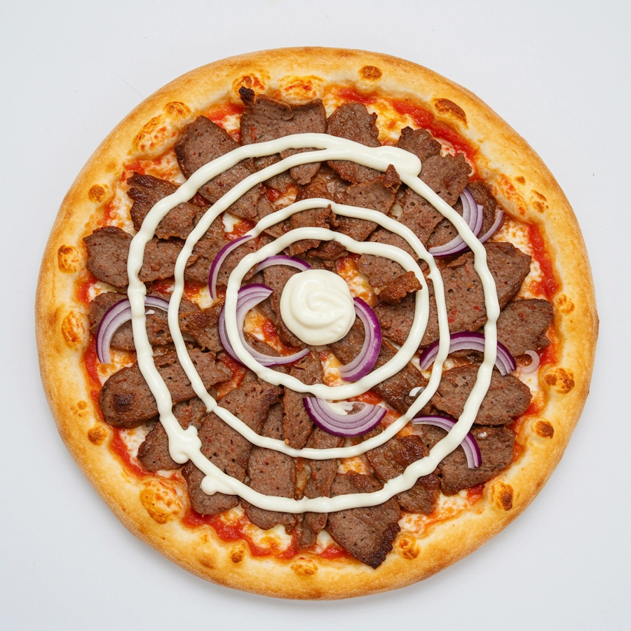 Ein italienischer Klassiker bei The Big Bite: Belegt mit Schinken, Champignons, Artischocken und schwarzen Oliven auf Tomatensauce und Mozzarella – herzhaft, abwechslungsreich und voll im Geschmack.