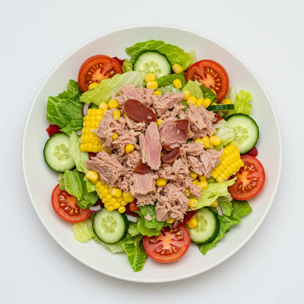 Frischer Salat mit zartem Hähnchenfleisch vom Drehspieß – knackig, leicht und voller Geschmack.